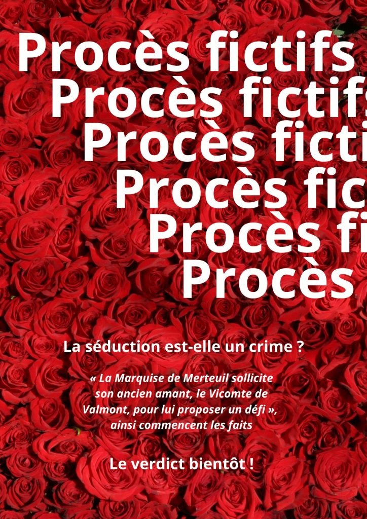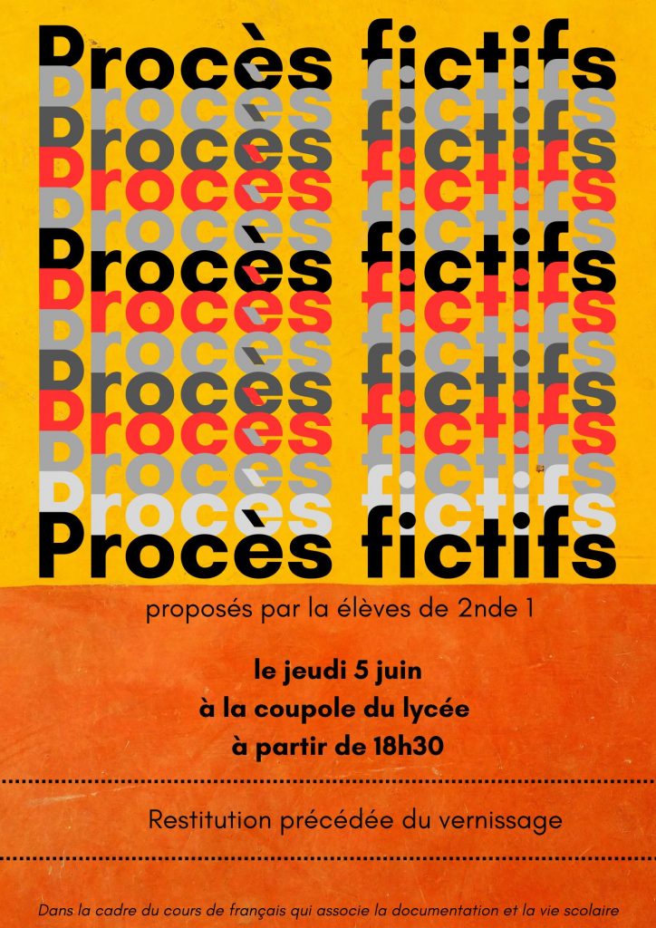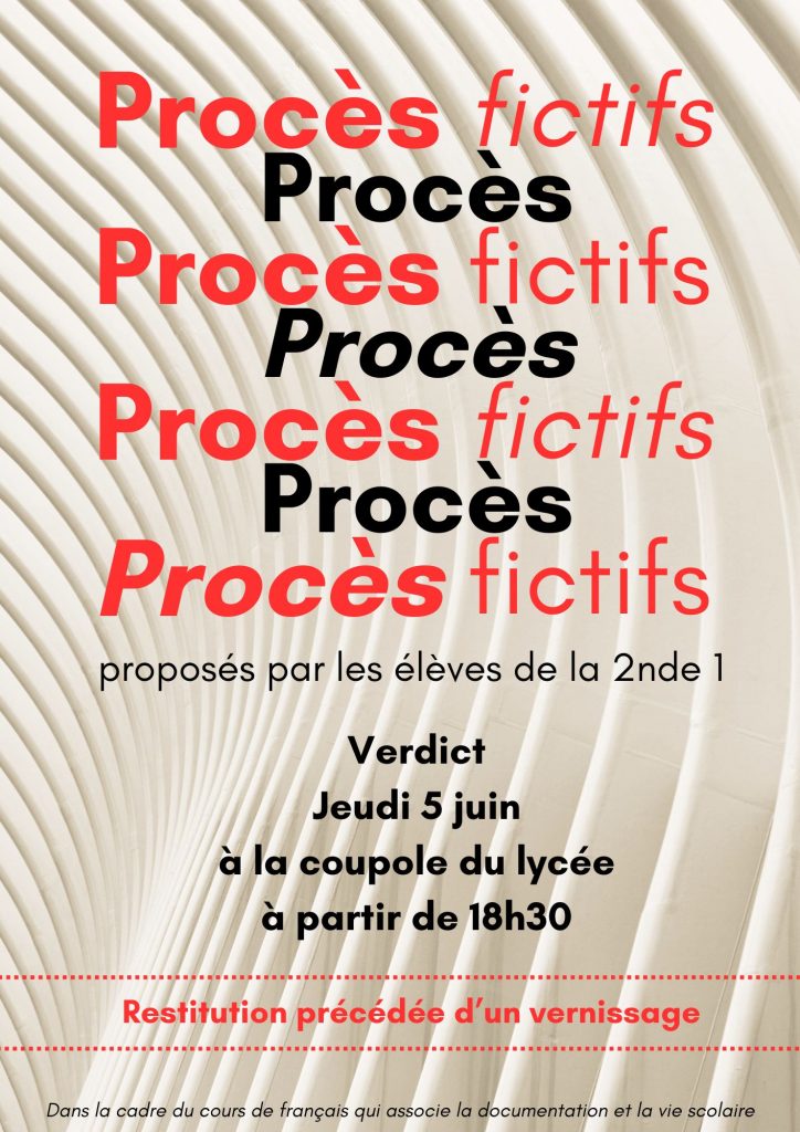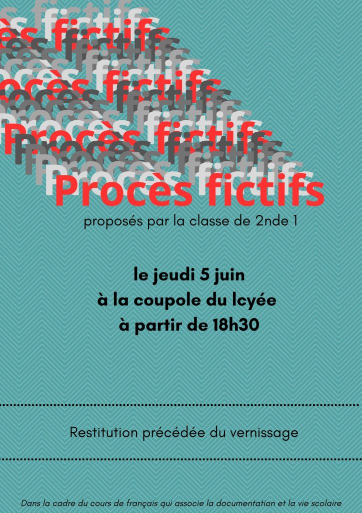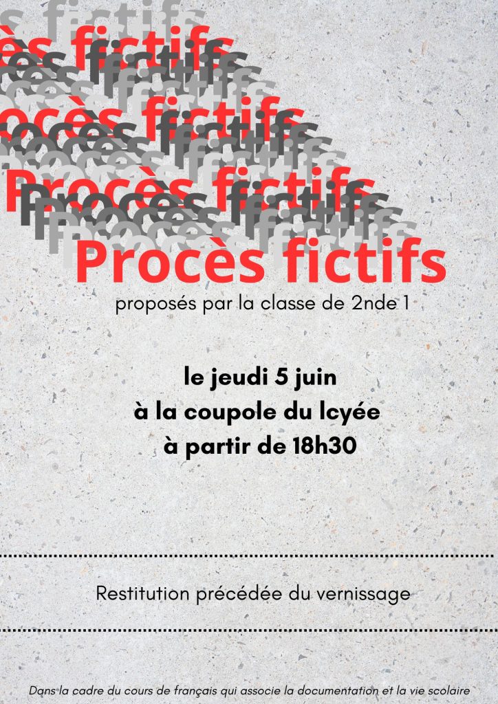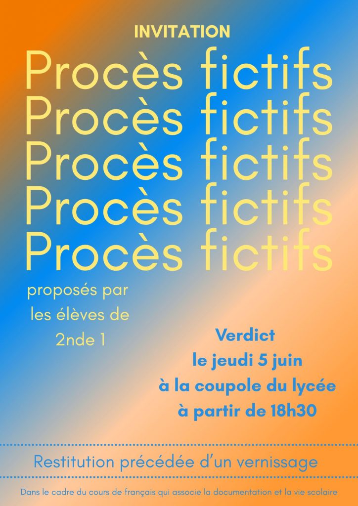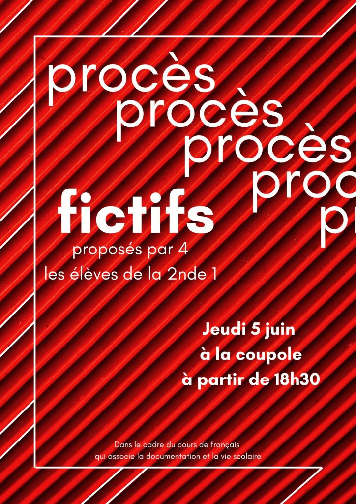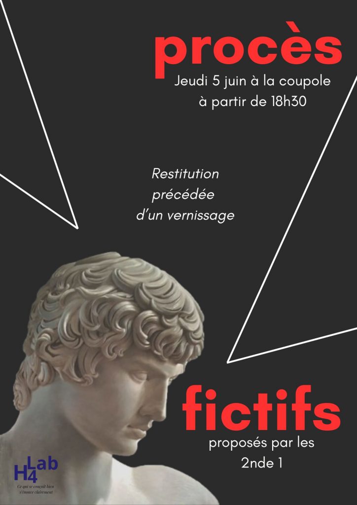 Les procès fictifs s’inscrivent dans une démarche créative plus globale. Ils ne sont pas seulement l’aboutissement d’un travail d’argumentation mené en cours de français. Cette approche créative se concrétise par l’organisation d’un vernissage pour exposer les pièces à conviction des élèves et les mettre en contexte. Le vernissage de l’exposition précède les procès fictifs.